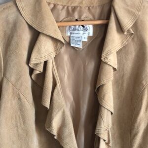 Western ruffle suede open front jacket. Pretty soft yellow suede. Size S. Previously worn in great condition. Minor wear to suede. Machine wash!