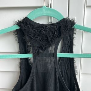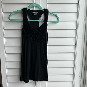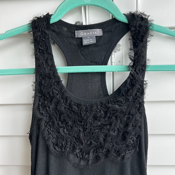 Cute boutique find from years ago. It’s just from another lifetime and is too small! This is a great summer outing tank. Cotton and supper comfy with a ruffle flare!