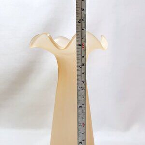 Ruffled Rose Pink Satin Glass Vase Vintage Frosted Glass Flower Holder 8 1/2”