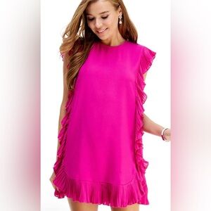Ruffled Round Neck Cap Sleeve Mini Dress Size Large