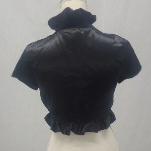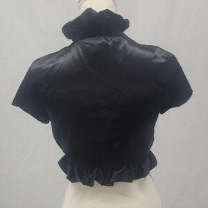Ruffled Shrug Black Satin Collared Open Front Cropped Whimsigoth Fairycore