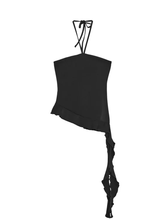 Ref 3641/810 Halter Asymmetric Ruffle Camisole with Draped Tie