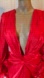 Stretch Factor: Slight Stretch Indulge in luxury with this scarlet dress, featuring dramatic sleeves for a bold statement. Perfect for elevating your collection.