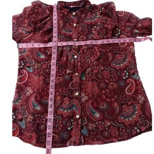 Ruffled Victorian Style Blouse Top LG Ruffles Feminine Retro Burgundy Peacock