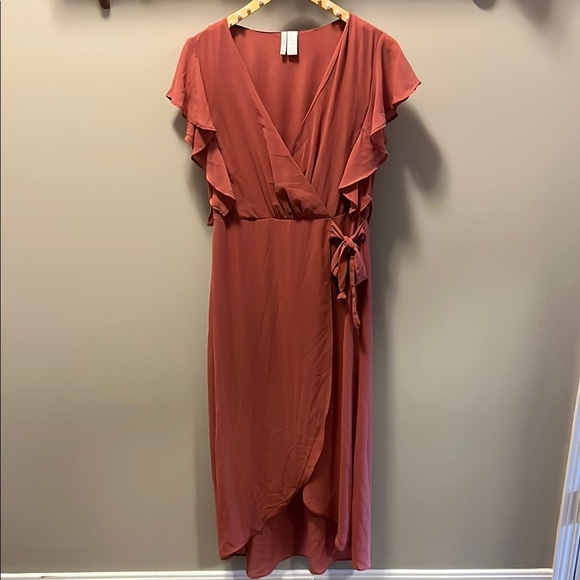 Ruffled Wrap Dress in Rust