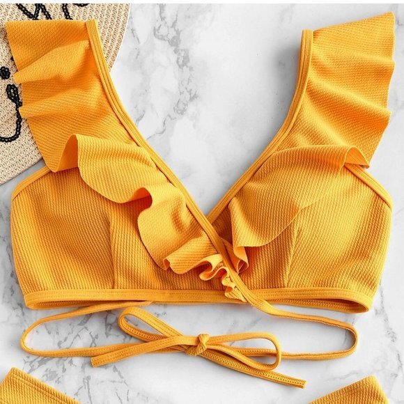 Ruffled Wrap Ribbed Triangle Bikini Top