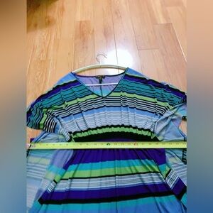 Ruffled boho Cover Up 18W multicolor cap tunic Dress top Stripe Blue