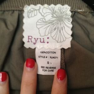 Ruffled jacket with short sleeves. Cute little jacket for early fall. I bought it at a boutique, it's made by Ryu. It looks pouffier then it actually is. Size small.
