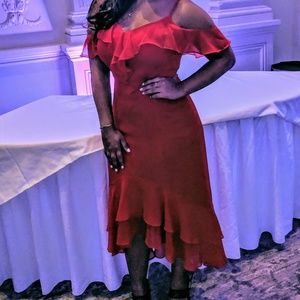 Ruffled sleeveless red flowy night occasion dress