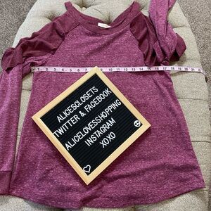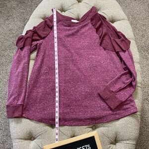 Ruffled Cold Shoulder Sweatshirt. Adorable and unique cold shoulder sweatshirt with a cold shoulder. This listing for bergundy, also available in denim blue listed separately. Made in USA.