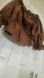 Ultra Romantic Chocolate Brown Peasant blouse with shirred elastic waist- making that peplum top look. Off the shoulder. Ruffled sleeve ends with cute brown tie. 71% Lyocell/ 17% Viscose/ 12% Polyester.