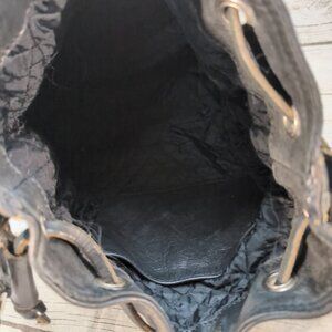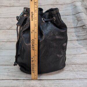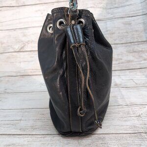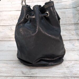 Rugby Bags Black Leather Vintage Made in Canada Draw String Bucket Bag