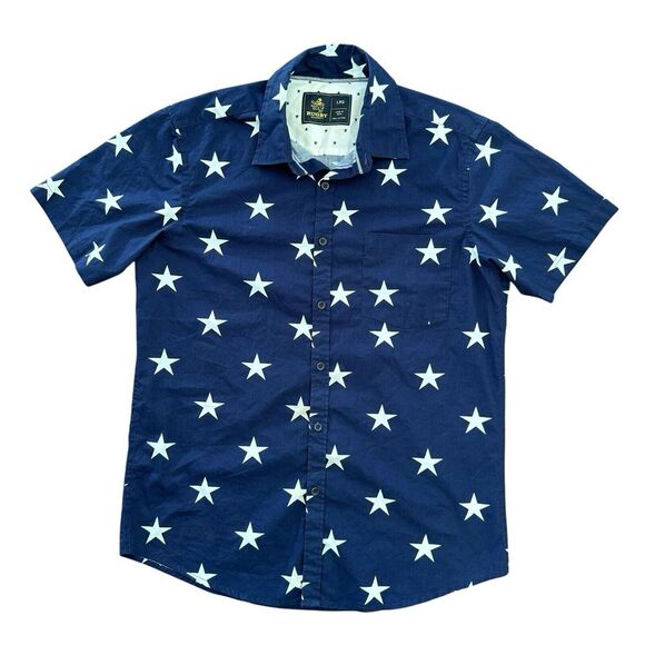 Offering this Rugby Large Blue Stars Short Sleeve Button Up Men's Shirt. Fabric is 100% cotton. No noted defects or stains.