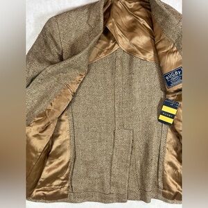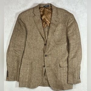 Rugby Ralph Lauren 42R Harris Tweed Herringbone Silk Wool Linen Blend Tan Blazer
