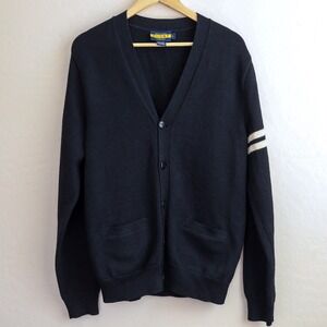 Rugby Ralph Lauren Varsity Wool Cardigan Large Black Collegiate Stripe Sweater