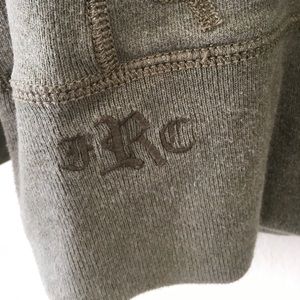 Rugby Ralph Lauren slim fit sweatshirt with front quilted hand warmer pocket. High quality woven cotton material with very minor pilling. A loose thread at lower left detailed in last photo that can likely be repaired.