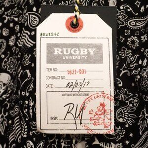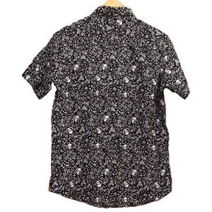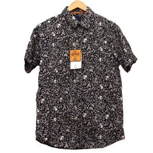Rugby University Black Button Up Shirt w/ White Skull Bandana Print Men’s Large