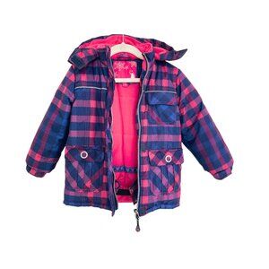 Rugged Bear Coat Kids 3T Pink Blue Plaid Puffer Fleece RG78022 Jacket Girls