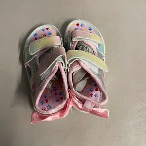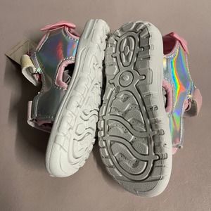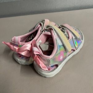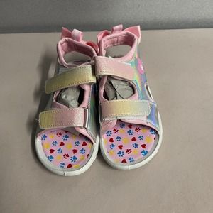 Rugged Bear Toddler Girls' Silver Pink Hearts Paw Print Pattern Sport Sandals 9