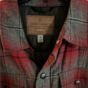 Rugged Elements men’s plaid work jacket gray and red size medium, quilted lining