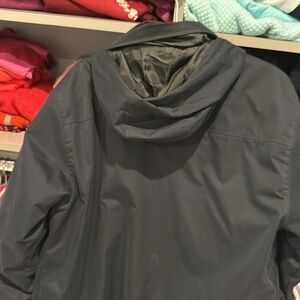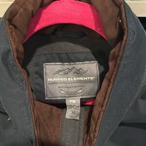 Gently used. No stains or rips. Fleece interior. Hidden zipper neck hood. 4 front pockets, 2 zippered.