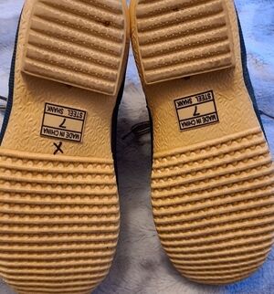 tan suede upper, lace up, rubber bottom half, steel shank, in good condition, needs insoles