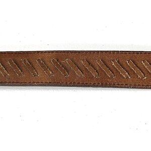 Elevate your style with this rugged brown leather belt for men featuring intricate stitching. Made from high-quality leather, this pre-owned accessory is perfect for men who want to add a touch of sophistication to their wardrobe. The belt is designed with a classic and versatile brown color that pairs well with any outfit, making it a must-have for any fashion-savvy man.