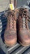 These boots are tagged, they were a sample boot for the brand used for a promotional photoshoot. So they have been worn once and were purposely scuffed up on the outside for the shoot. Inside and soles in perfect condition.