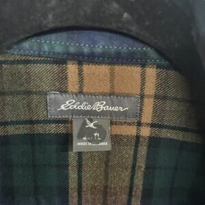 Rugged Plaid Flannel Shirt Eddie Bauer Green XL Tall Outdoor Core Fit