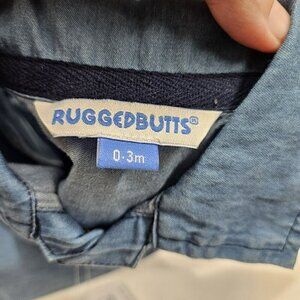 Rugged Ruffle Butts Sz 0-3M Blue Denim Chambray Romper One Piece Rufflebutts NWT