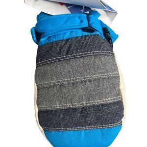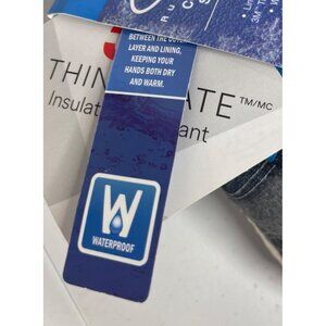 Youth sized RW Rugged Wear ski mittens designed for cold weather conditions. Crafted with medium Thinsulate insulation and waterproof inserts, these mittens are brand new with tags and feature a stylish blue and gray color combination.