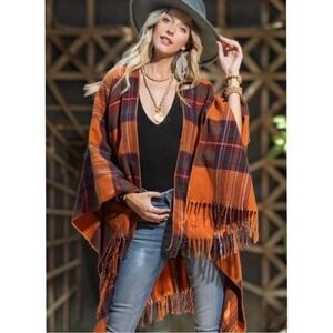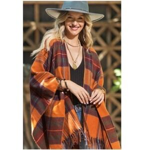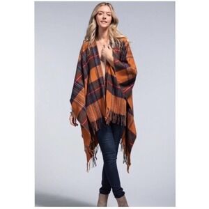 Ruggine Bohemian Soft Plaid Ruana Fringe Accent Poncho NWT Amberglow