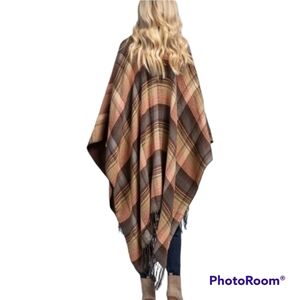 Reversible plaid ruana with fringe. Soft and warm.