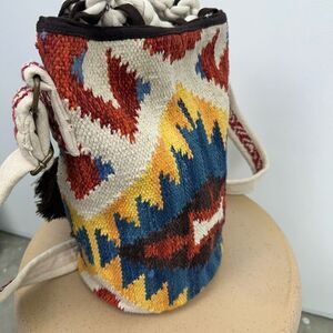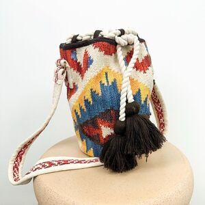 Ruggine Hand Woven Aztec Inspired Boho Bucket Bag With Shoulder Crossbody Strap