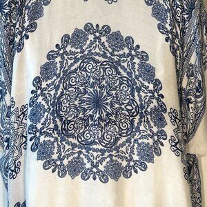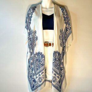 Ruggine OSFA Navy & White Gauzy oversized kimono Boho Chic Cover Up Beach
