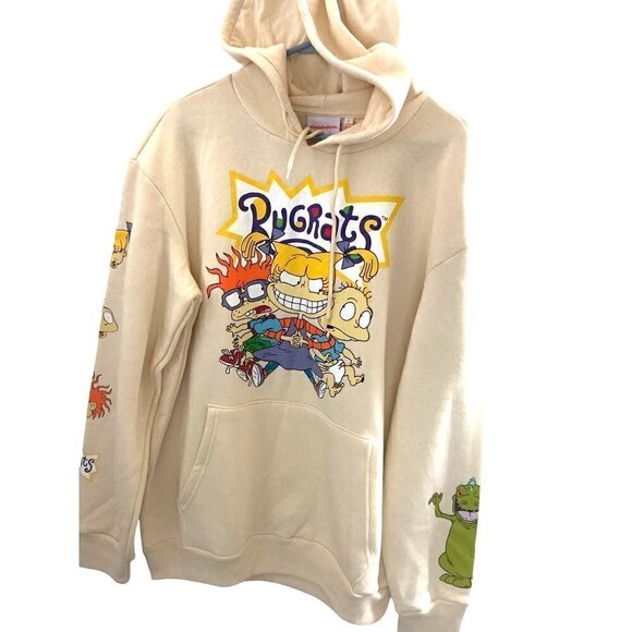 Rugrats Nickelodeon Hoodie Logo Graphic Print Cream Color L