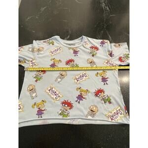 if you are still a big fan.... here is your chance. rugrats characters on a baby blue background. Size is Large. Measurements are included so please double check to ensure this works for you.