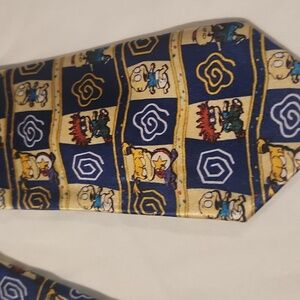 Elevate your look with this stylish patterned tie. Featuring a sophisticated black and blue design, it's perfect for any formal occasion.