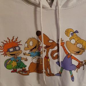 Super adorable and 90s fave toddler cartoon Rugrats hoodie. Also has show logo tape on the side of each sleeve. Sz small.