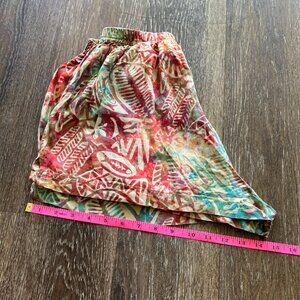 -Size small, 100% Rayon with elastic stretchy waistline about 2" plus