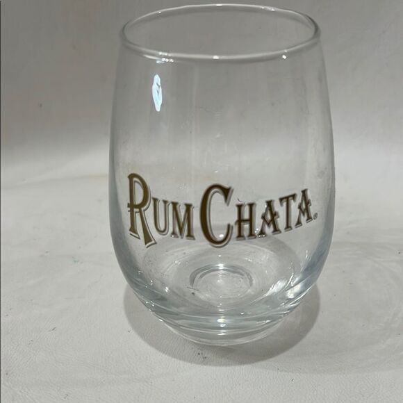 Elegant clear glass tumbler with RumChata logo. Perfect for cocktails.