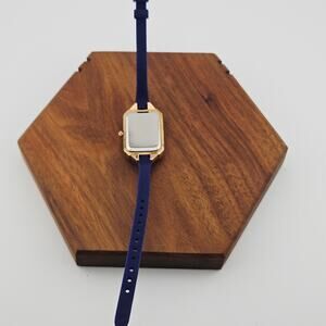 Rumba Watch Gold Tone With Cobalt Blue Thin Silicone Band Bold Futuristic Casual