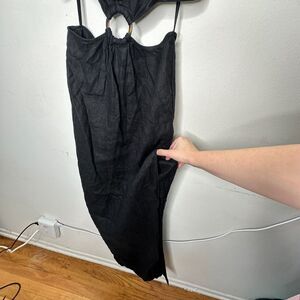 Rumer Black Avalon Linen Ring Dress Bandeau Top & Side Slit Skirt Zip Back