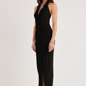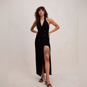 Rumer Free People Halter Top Dress Formal Button Up Linen New Black M Wedding