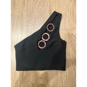 Rumer One Shoulder Crop Top Black Cutout Ring Detail Party Clubwear Size S NWT