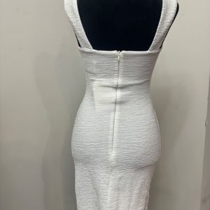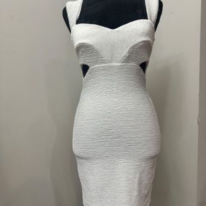 Sweetheart bodycon dress with side waist cut out detail, wide straps and zip closure at back. Fully lined.