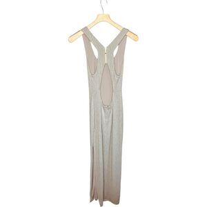 Tags: fall, winter, spring, summer, all seasons, Rumer, women’s, racerback, high slit, sleeveless, metallic, seafoam, below the knee-length, long, maxi, dress, office, work, career, corporate, dinner, date, evening, night out, special occasion, black tie, event, holiday, party, red carpet, gala, neutral, feminine, girly, wedding, wedding party, wedding guest, nye, news years eve, bridesmaid, capsule.
