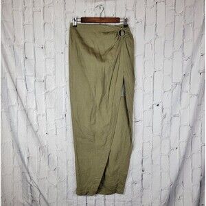 Rumer The Label olive green Byron ring asymmetrical front hem linen maxi skirt