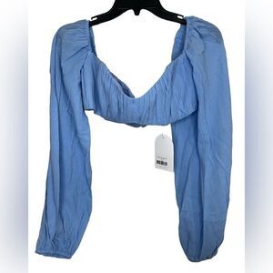 New With Tags! Rumer The Label x Revolve Blue Linen Resortwear Camille Top/Skirt Set In A Size Large !