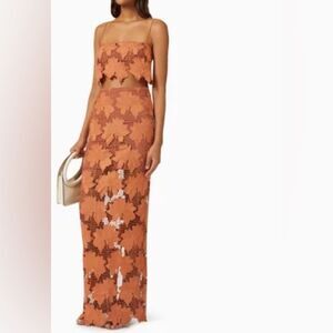 Rumer Tropez Orange Floral Lace Crochet Crop Top Med NWT
